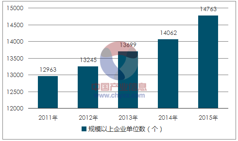 2011-2015 年我(wǒ)國塑料制品行(háng)業規模以上企(qǐ)業數量情況